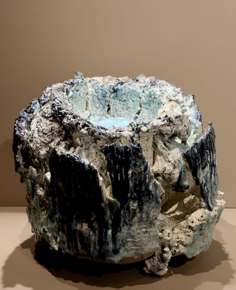Depuis quelques années, le Creuset est devenu le coeur de ses recherches. Le Creuset symbolise la figure de l’achimiste solitaire dans son atelier. Mais dit-il, « je souhaitais n’en garder que l’idée symbolique, l’objet où faire transmuter la matière par le feu, l’outil fonction devenant une sculpture, image poétique du monde ». Le Creuset est aussi un forme matricielle où Benoît Pouplard peut assembler des éléments de compositions diverses qui vont entrer en collision à la cuisson créant un objet inédi . L’exposition « A la Recherche d’un Nouvel Ordre », présente plusieurs Creusets de différentes tailles. Parmi ceux-ci, quelques uns donnent l’impression de casser le moule et de se libérer de la contrainte qui leur est imposée. Ils sont destructurés, plus ouverts et laissent entrevoir un rapprochement avec les sculptures de paysages, les Vestiges et les Blue Wanderer. Bernard Bachelier