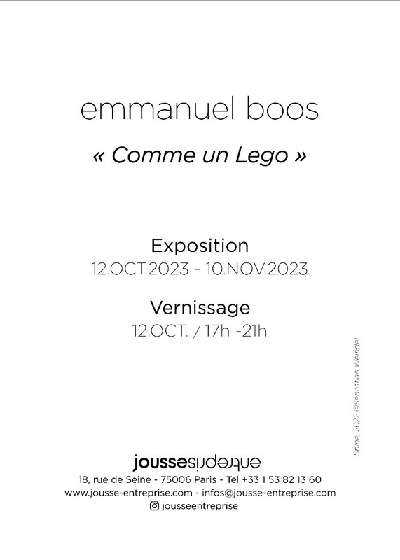 Emmanuel Boos galerie Jousse Entreprise 12 octobre 10 novembre 2023