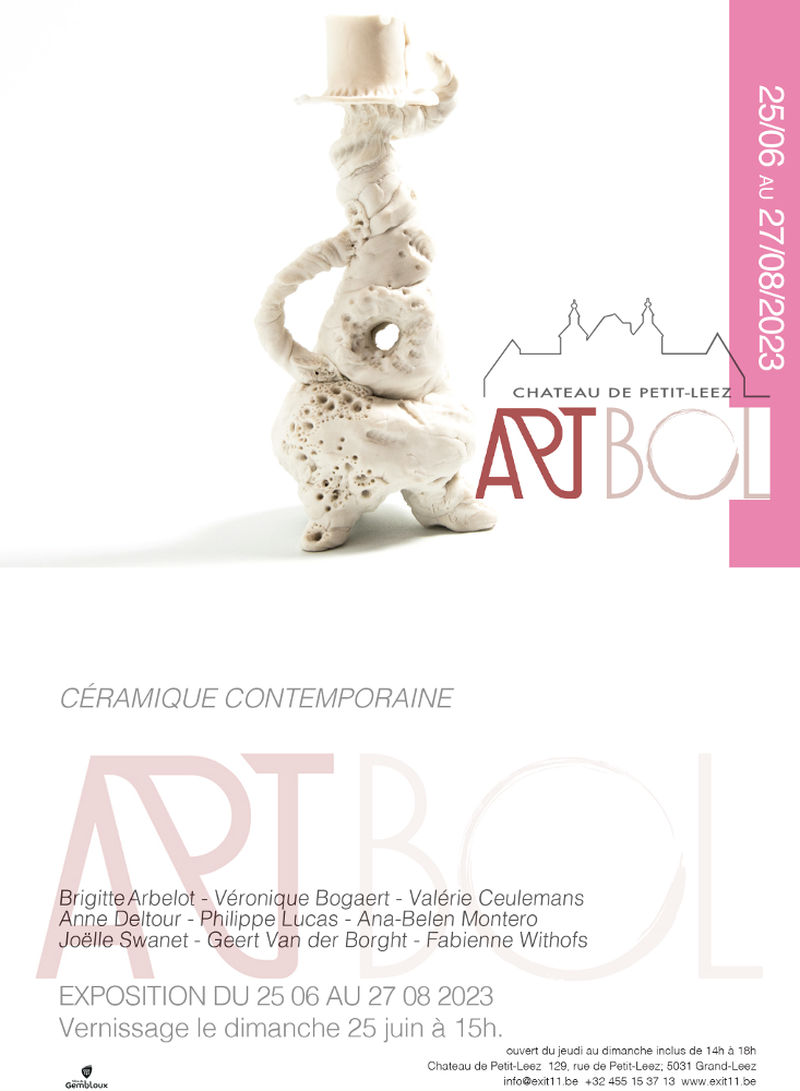 Les créations de neuf artistes, au départ rassemblés autour de “bols d’art”, seront exposées dans la galerie Exit11 située dans ce lieu prestigieux qu’est le Château de Petit-Leez. Tout à côté de leurs céramiques fonctionnelles, chacun des créateurs nous révèle son univers. Ce questionnement ou regard sur le monde et l’humain est une superbe occasion de voir rassemblé en un seul lieu l’univers des artistes d’ArtBol, avec des bols et au-delà.