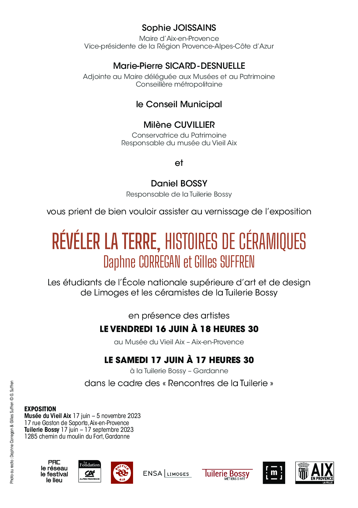 Une semaine de conférences, formations, échanges, repas partagés, soirées festives, autour des Métiers d’Art et de la Céramique, proposée par l’association « Tuilerie Bossy – Métiers d’Art » et l’Atelier Buffile, en collaboration avec le Musée du Vieil Aix d’Aix en Provence, et l’Ecole Nationale Supérieure d’Art de Limoges.