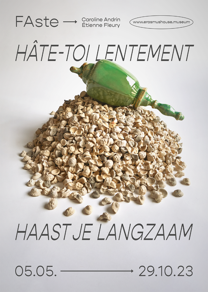 Le duo d’artistes FAste (Caroline Andrin / Étienne Fleury) investit les espaces du musée de la Maison d’Érasme et offre une interprétation inédite des Adages d’Érasme sous forme sculpturale, une première. Intitulée Hâte-toi lentement – en référence à l’un des 4151 adages – l’exposition dévoile une série d’œuvres céramiques presque toutes créées pour l’occasion. Ensemble, elles établissent de manière singulière et résolument novatrice un lien avec les écrits et la pensée d’Érasme. Avec cette proposition artistique, le duo d’artistes FAste ouvre un champ de recherches encore peu exploré à l’époque contemporaine.