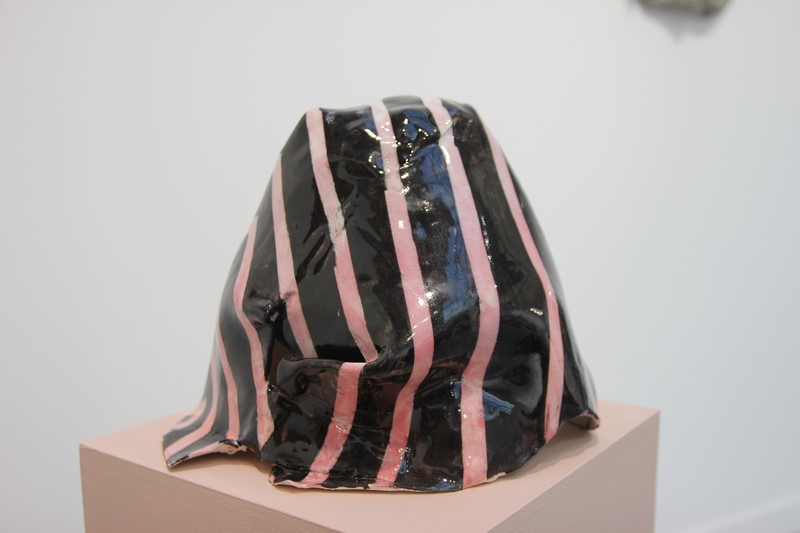 Caroline Achaintre était présentée par la galerie londonienne, Arcade, dans la mezzanine du Grand Palais. Caroline Achaintre est une artiste française née à à Toulouse en 1969, qui vit travaille à Londres. Elle s’exprime sur différents matériaux, le papier pour le dessin mais surtout les fibres, la laine en particulier, et la céramique. Elle fait référence au primitivisme et à l’art tribal. Elle présente aussi des installations. Les trois pièces de céramique présentée à la Fiac partaient d’une matière froissée pour évoquer des masques. Caroline Achaintre sera exposée au FRAC Champagne Ardennes à Reims du 27 janvier au 23 avril 2017 qui présentera à cette occasion sa première monographie.